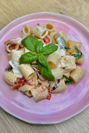 Dressing: Backofen auf 200 Grad Ober- und Unterhitze vorheizen. Das Gemüse (außer der Zwiebel) waschen und kleinschneiden. Alles mit reichlich Olivenöl auf ein Backblech geben und mit Salz und Pfeffer würzen. Die Knoblauchzehen ungeschält dazugeben und alles für etwa 25 Minuten in den Backofen geben. Die Zwiebel schälen, halbieren und in Ringe schneiden. Basilikumblätter abzupfen. […]