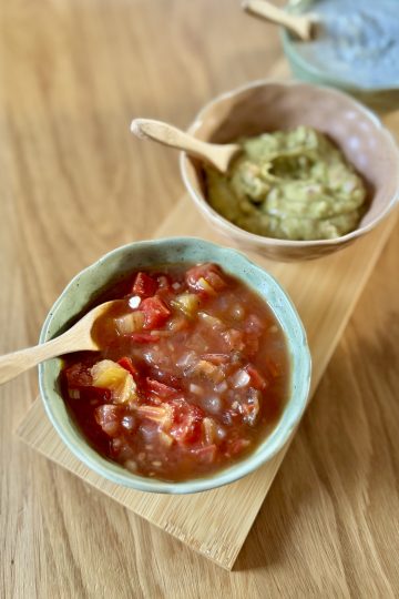 Peperoni waschen, Kerngehäuse entfernen und klein hacken. Zwiebel und Knoblauch schälen und ebenfalls klein hacken. Tomaten waschen und in Würfel schneiden. Wenn die Tomaten zu viel Kerngehäuse haben, dann dieses entfernen, da es zu sehr saftet. Etwas Olivenöl in einen kleinen Topf geben und Chili, Knoblauch und Zwiebeln andünsten. Sofern Tomatenmark benutzt wird, dieses mit […]