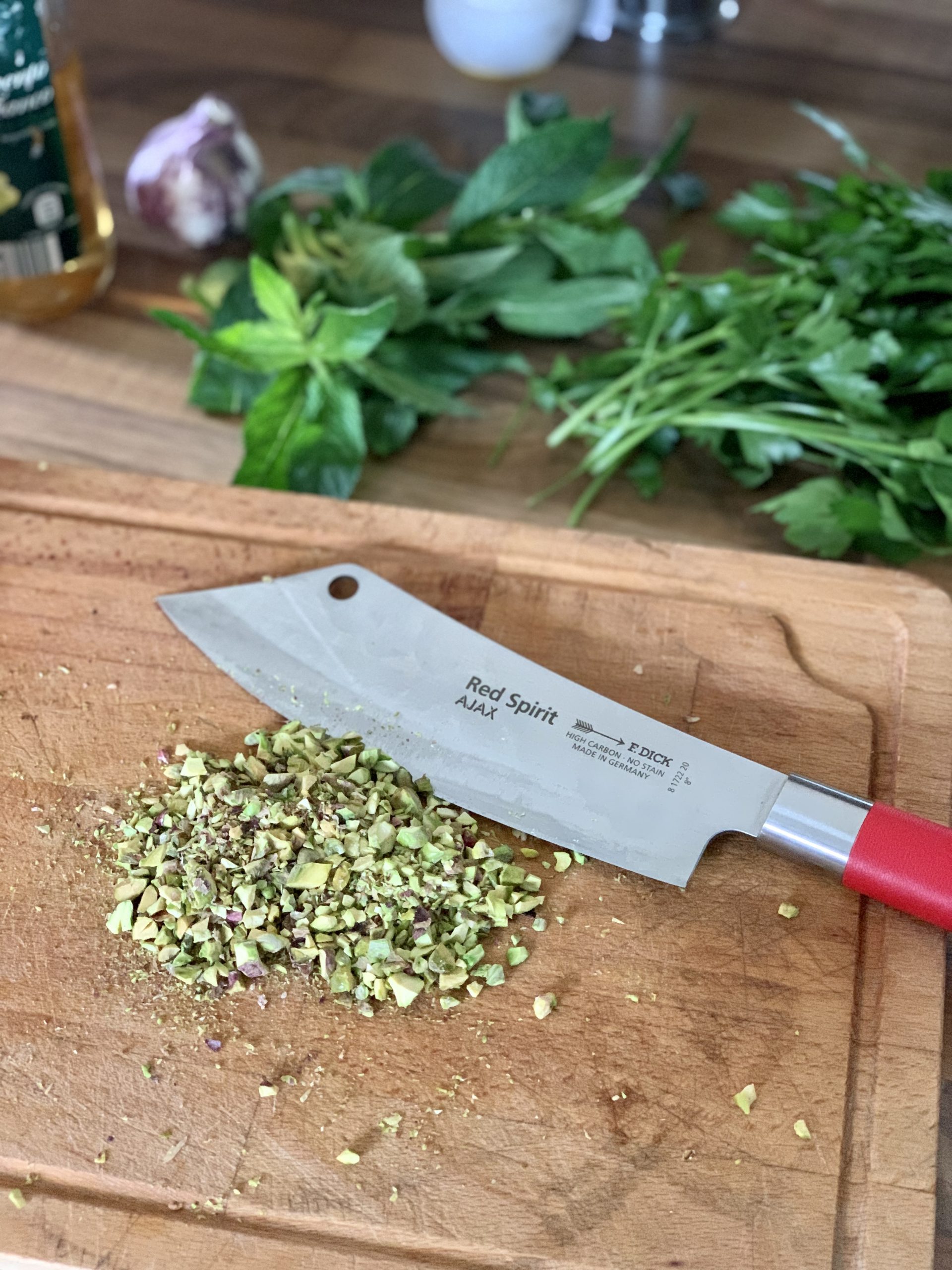 - 60 g gesalzene geröstete Pistazien (Gewicht ungeschält)